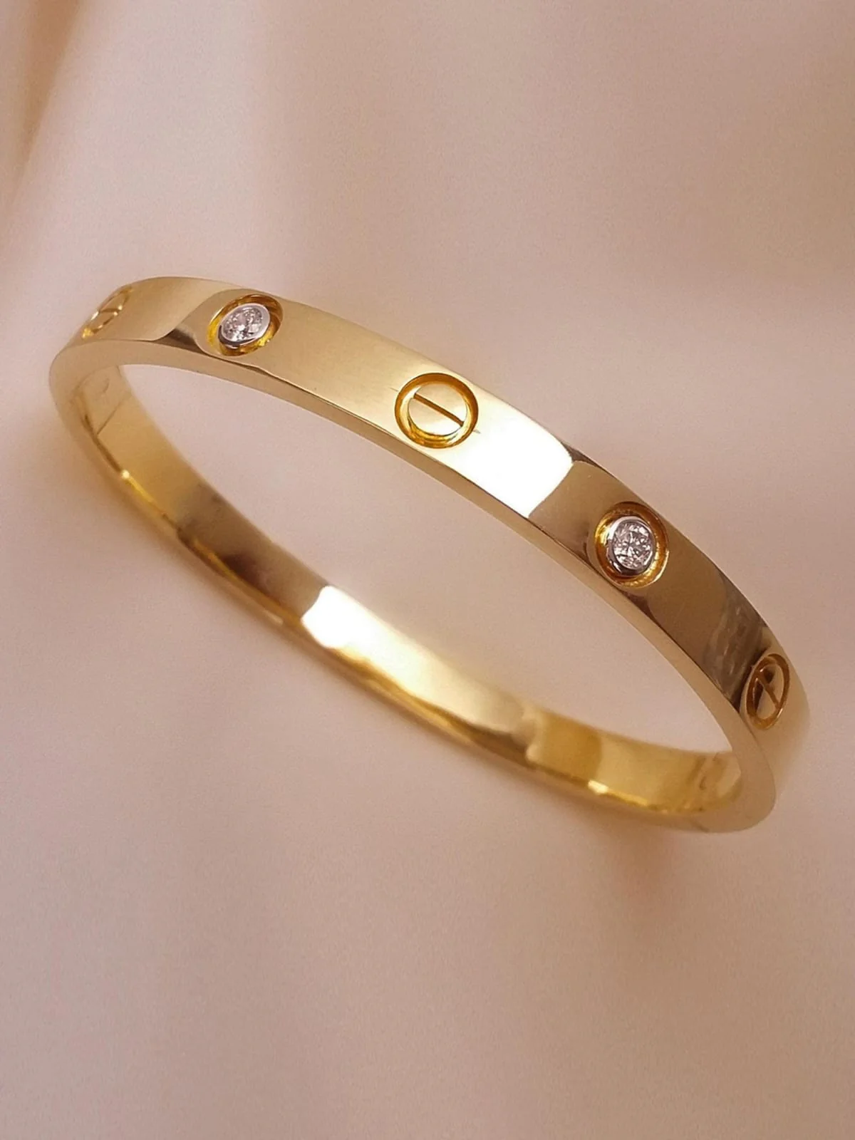 Its minimal yet luxurious look makes it perfect for everyday wear as well as special occasions. Style it solo for a refined statement or stack it with other bangles for a modern layered look. Designed for comfort and durability, this bangle is a must-have for women who love understated luxury.