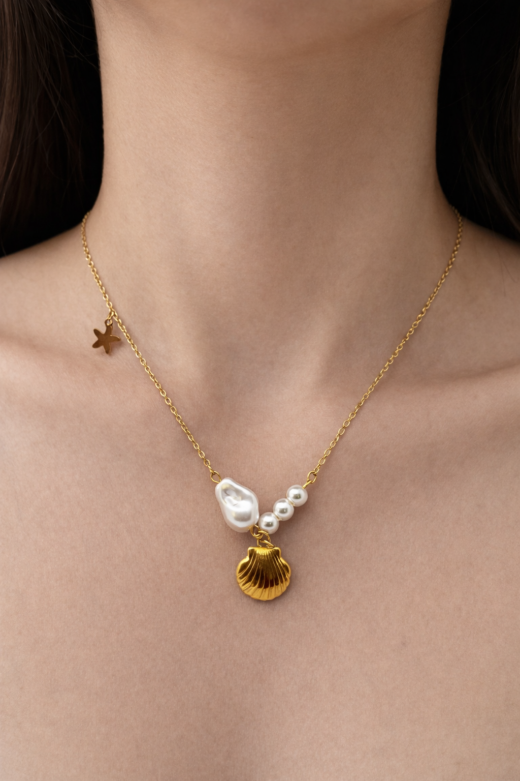 Sea Whisper Pearl & Shell Anti-Tarnish Neckchain